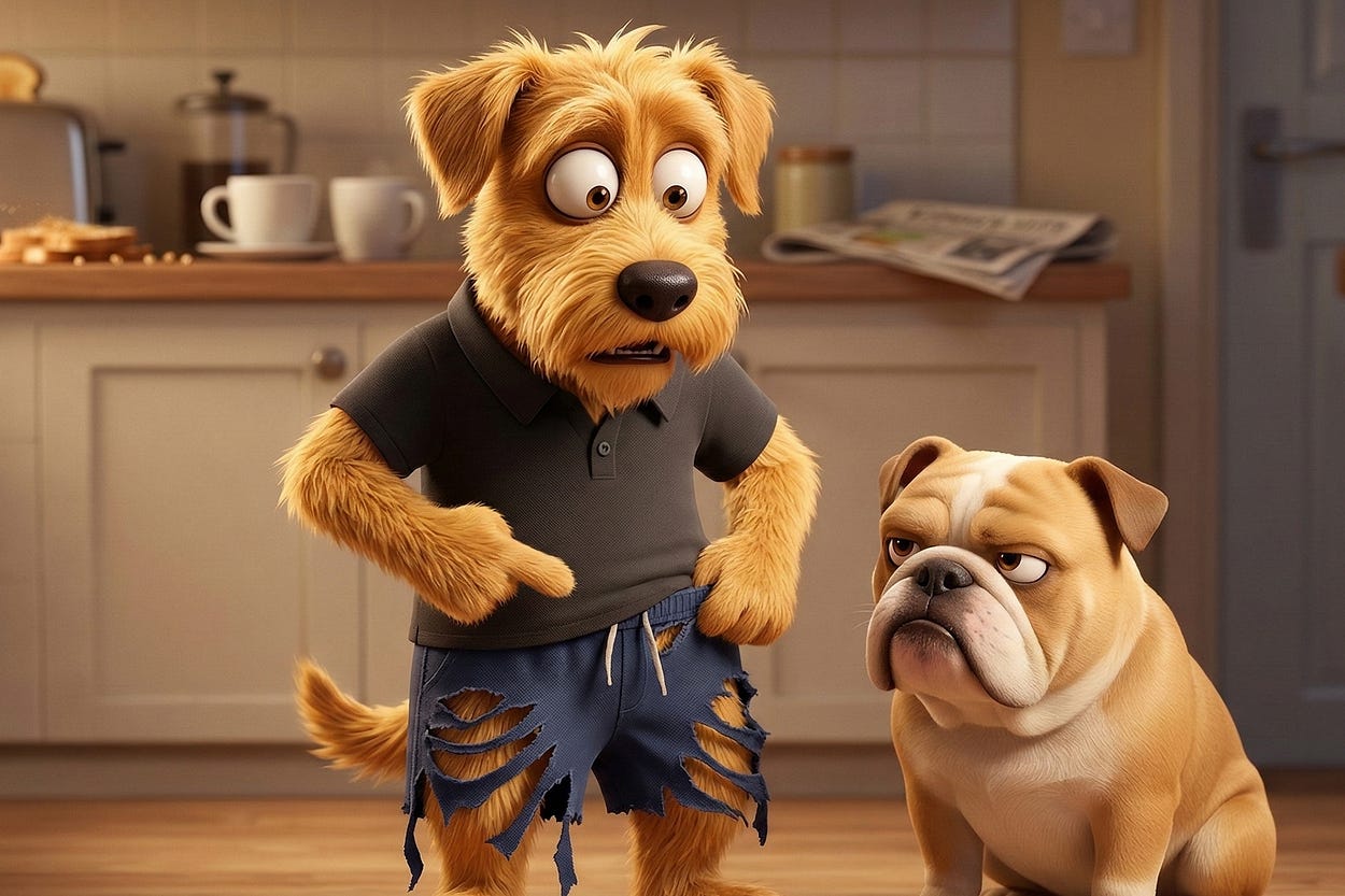 TL;DR: A joyful greeting has just turned your £20 "pure cotton" lounge shorts into a distressed avant-garde experiment. Welcome to the £68 scratch.