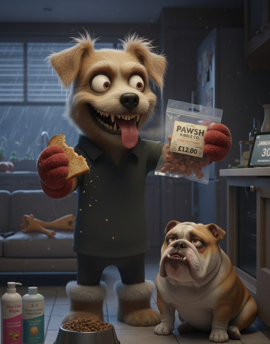 Before I had the dog, I was a man with a savings account. I had “diversified assets” and a Monzo pot specifically for a week in Mykonos. Now, my primary asset is a half-chewed rubber chicken and a bag of Hypoallergenic kibble that costs more than my weekly shop at Sainsbury’s.