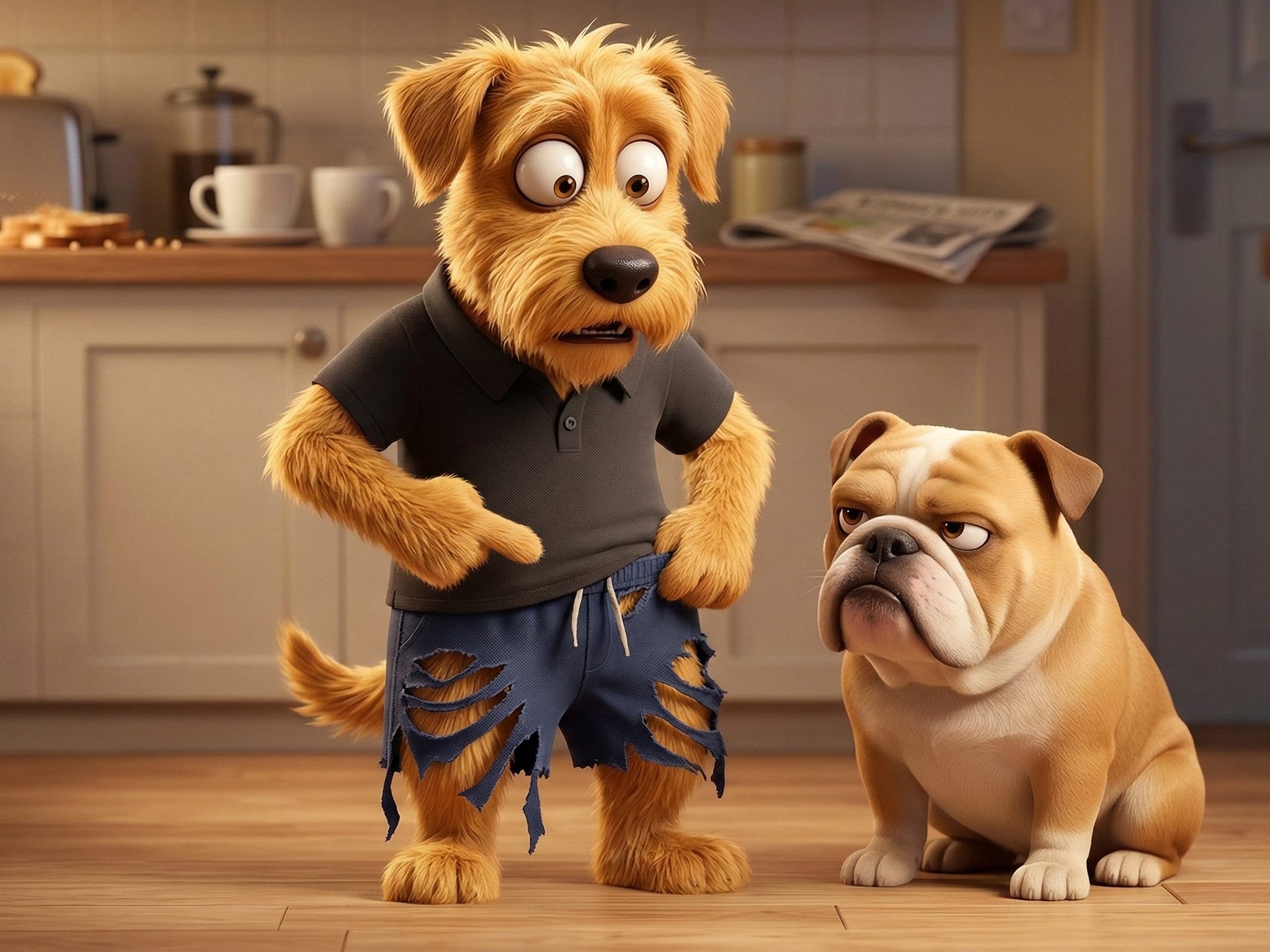 The Result: A sharp, audible rip. One perfectly manicured bulldog claw found its way through the premium organic cotton and straight into my thigh.